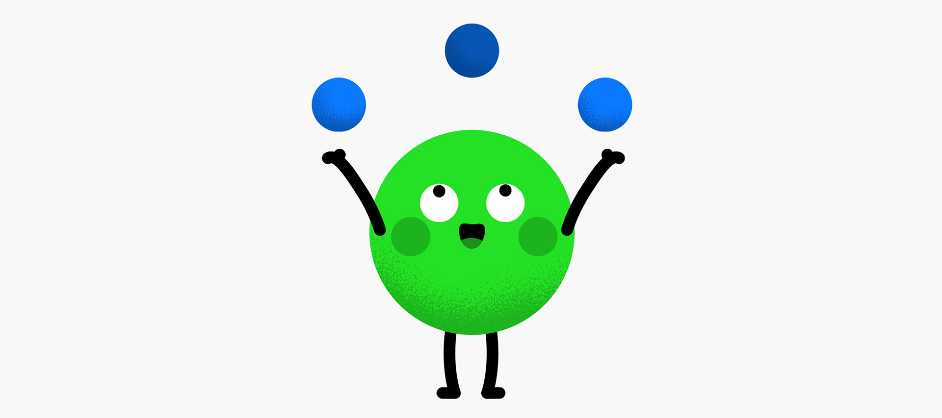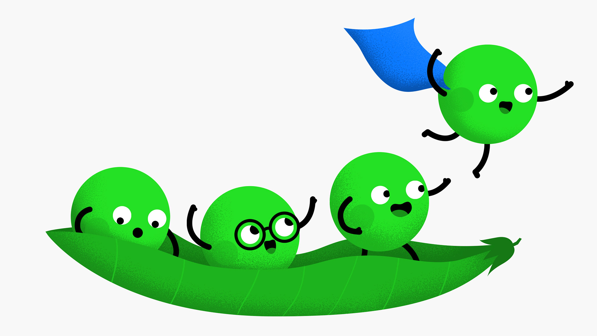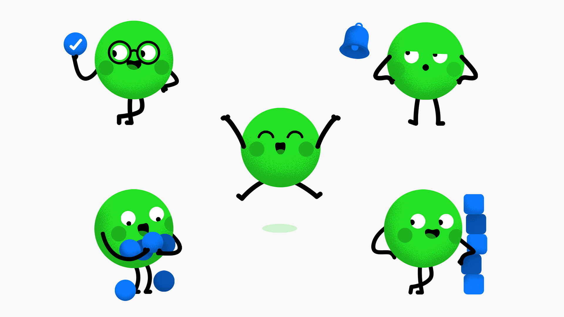 Character designs for an application. The peas evaluate your different tasks in the app and they cheer you on to perform better.